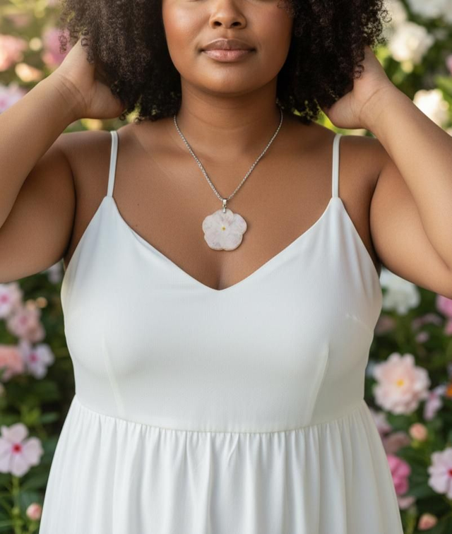 Colgante con flor blanca rosada. Natural y prensada a mano.